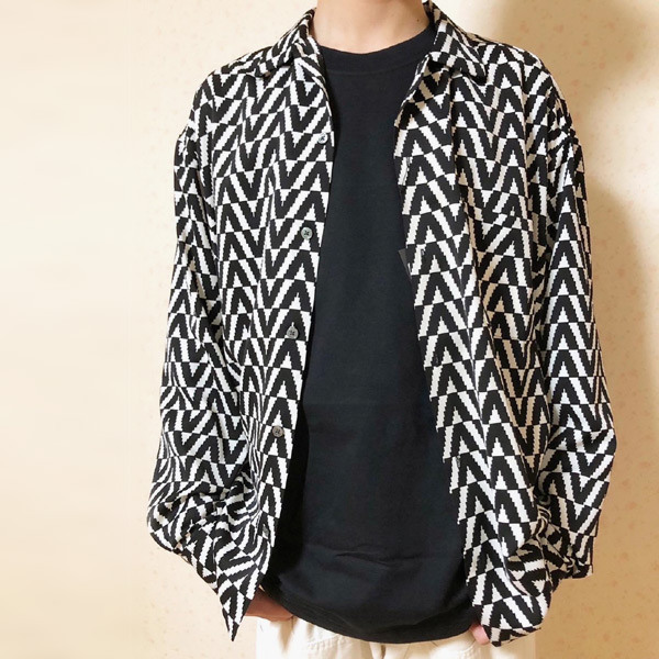 抜群の存在感!!Basket の幾何プリントワイドレギュラーシャツ♪ 今流行のレトロモダンなこのシャツは、これ1枚でコーデがグッと おしゃれに仕上がります。 |
