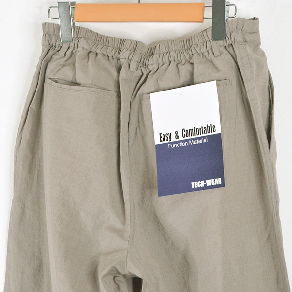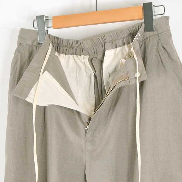 Basketより涼しげなテックリネンワイドテーパードパンツが入荷! ウエストバック部分をゴムで仕上げ、きちんと感を残しながら 紐で微調整できる仕様です。 お手入れが楽なTECH WEAR を使用し、麻を混ぜることでより快適に リネンらしい風合いをもったパンツに仕上がりました。 カラー・グレージュは同シリーズシャツと合わせてセットアップで 楽しむことができます。 |