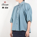 人気のBrocante グランシャツにインディゴブルーのデニムシャツが登場! 軽い着心地のライトオンスデニムを使用。 小さな衿のまわりにはギャザーをたっぷり施しふっくらとしたシルエット♪ 袖は身幅と切替のない6~7分袖のドルマンスリーブでゆったり着こなせます。 シャツとして、さっと羽織ってもOK の一枚! 女性らしい小振りな襟に仕立て、 フロント(前)とバックに(後ろ)細かなギャザーをたくさん施した ドルマンスリーブのふんわりとしたシルエット。 無骨なデニム素材を、 ドレープ感のあるふんわりとしたフォルムに仕立てているので 優しい大人な女性像を演出してくれます。 黒蝶の貝釦の掛け合わせも引き立っています。 ブロカント代表的シャツ。 MADE IN JAPAN |