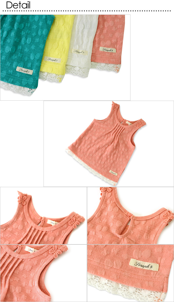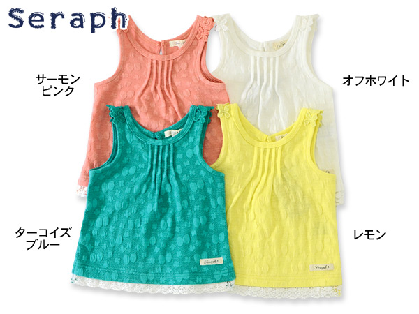 裾のレースがとってもかわいいタンクトップが Seraphから入荷しました^^♪ ちょうちょの形がポコポコと浮き出して見える 可愛い生地がいいね◎ 方の部分のレースモチーフもポイントです☆ |