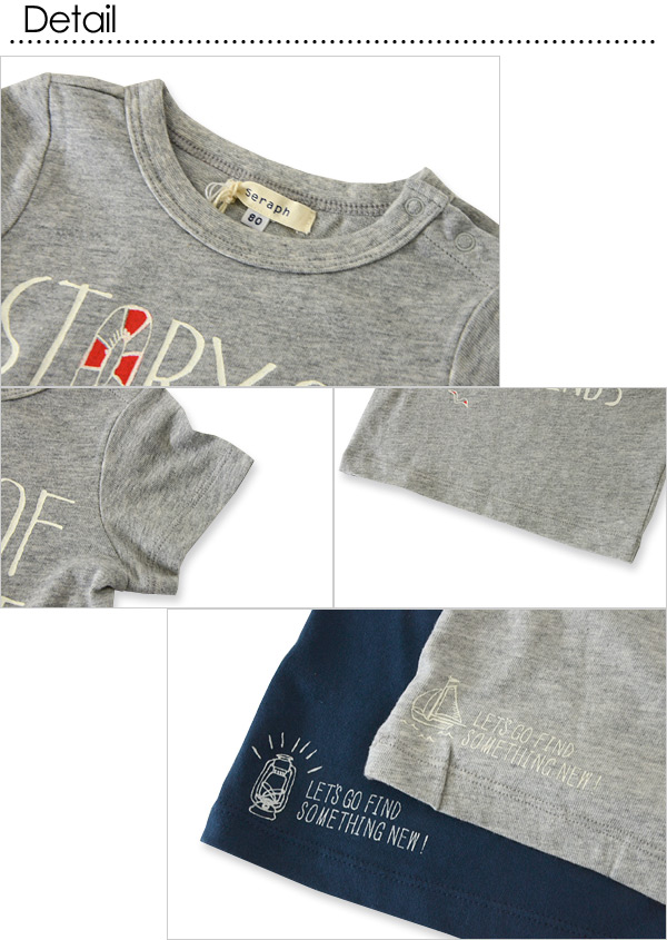 | フロント部分のプリントが目を引く半袖Tシャツが Seraphから入荷しました( ^ω^ )♪* これからの季節にぴたったりな1枚です◎ ※80cm~95cmはショルダーホック付き。 |