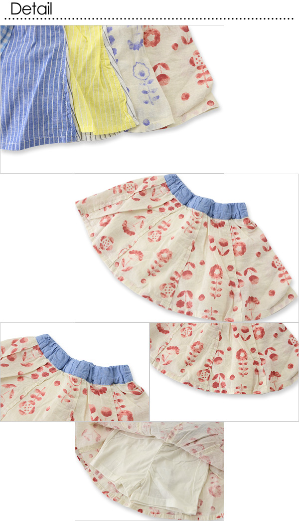 | 素材 | スカート:柄部分:綿 70%・麻 30% 無地部分:麻 55%・綿 45% パンツ:綿 100% |
