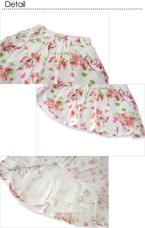 | お洒落な花柄がとっても可愛いスカートが Seraphから入荷しました(●´v`●)♪* 中にペチパンツが付いているので元気なキッズでも安心★ ポケットの部分のリボンも可愛いね!! |