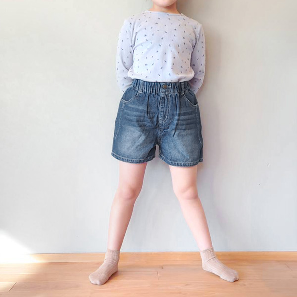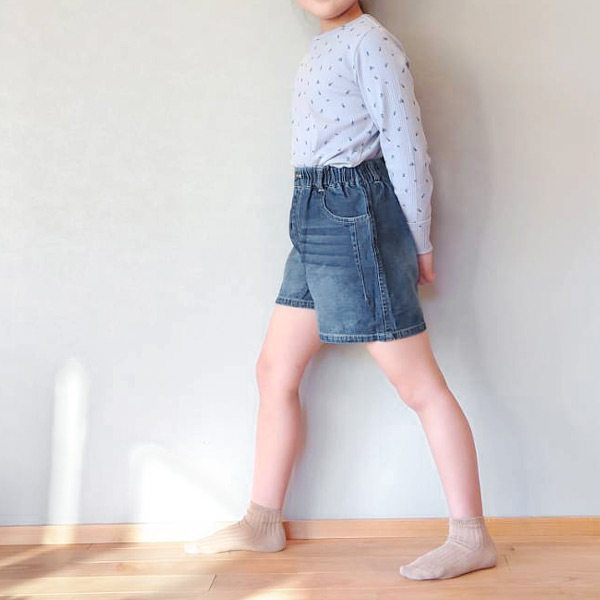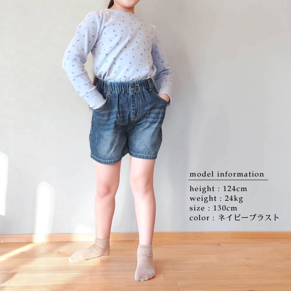 | 元気ガールにぴったり!デニムショートパンツ 両サイドのポケットに入ったダーツがアクセントに! やわらかなデニム生地を使ったPetit pas のパンツ ウエストゴム仕上げ☆ ワイドなトップスともバランスがとりやすくオススメ ※こちらの商品の150cmはこちら |