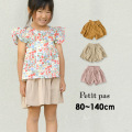 | たっぷりのギャザーのPetit pas のキュロット♪ ナチュラルカラーのキュロット ポコポコと小さなデコボコがある生地を使用 スカート感覚で着れるキュロット! |