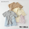ストライプ生地が爽やかなSeraph の半袖Tシャツ! Tシャツに布帛のストライプ生地をドッキング 1枚でもパッとかわいくなれちゃうTシャツ◎ ※90・95cmはショルダーフック付 |