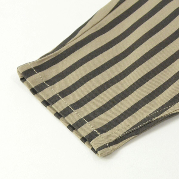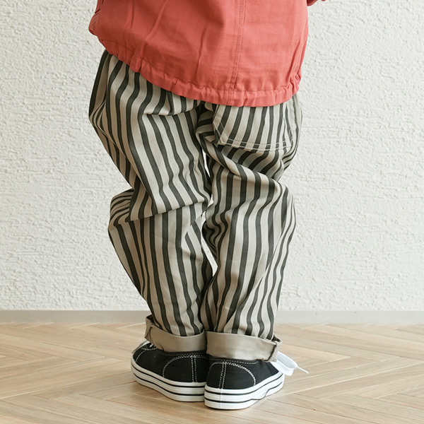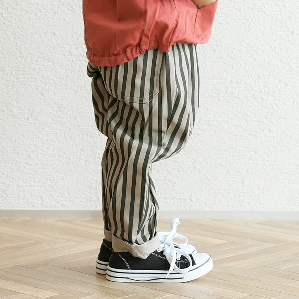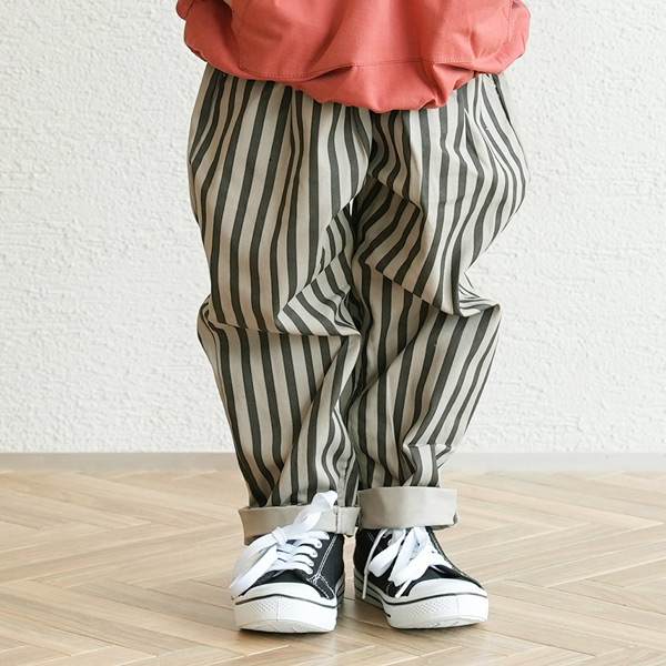 股上ゆったりシルエットのテーパードパンツ♪ ウエストタック入りで美シルエット! 中厚の生地はストレッチ性もあり、 快適に履くことができます◎ ストライプときれいなパープルの2色展開。 |