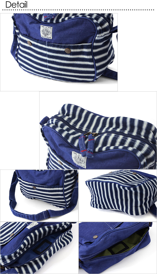 どんなコーデにも合わせやすいおしゃれなショルダーバッグが Ocean&Groundから入荷しました。 通園バッグとしても、普段使いもできちゃうデザイン◎ 内側にネームホルダー付き。 ポケットも多く使いやすさもバツグン ※生産時期によりヒッコリーの柄が画像と異なる場合がございます。 ※デニム製品の特性上、雨・水・汗・摩擦などにより色落ちや 他の物へ色移りする可能性がありますのでご注意ください。 |