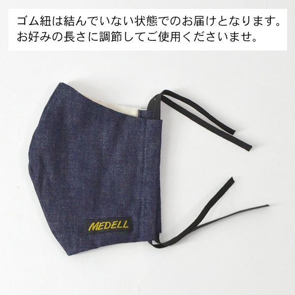 | 注意 | ※100%ウイルスを防ぐものではございません。花粉症や咳やくしゃみで人に迷惑をかけないためのエチケットマスクです。 ※デニムはインディゴ染料ですので、色落ちいたします。大事に育てて、風合いをお楽しみください。 ※綿100%です。洗いで縮みは発生します。手洗い、日陰干しをおすすめします。 ※衛生上、洗ってお使いください。 ※入荷時期により生地やゴム素材に変更がある場合もございます。 ※衛生用品のため返品交換・キャンセル対応はできません。 |