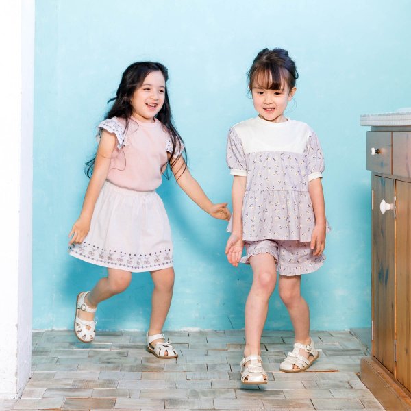 • 異素材切り替えティアードトップス キッズ 女の子 ベビー 半袖Tシャツ リブ 花柄 女の子 子供服 セラフ Seraph 4026404 S207064-m14mm