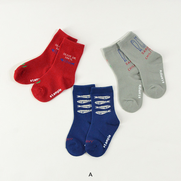 フィッシュ缶CANクルーソックス キッズ ベビー レディース 靴下 くつ下 くつした そっくす 個性 可愛い オシャレ おしゃれ お洒落 魚 さかな とうがらし 3足組 3P スタンプル stample 7010496 72657-mmLL 【メール便可】